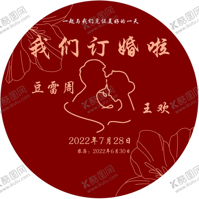 原创共享素材,尺寸大小是5669*5669像素,我们订婚啦展板是由平面广告设计师muteng12上传,浏览本次作品的您可能还对我们订婚啦,订婚宴,圆形展板,订婚展板,结婚展板,订婚海报,男女线条图,花线条图,喜宴,订婚,结婚,迎宾,背景,新人,红色背景,花,平面广告,,平面广告感兴趣。
