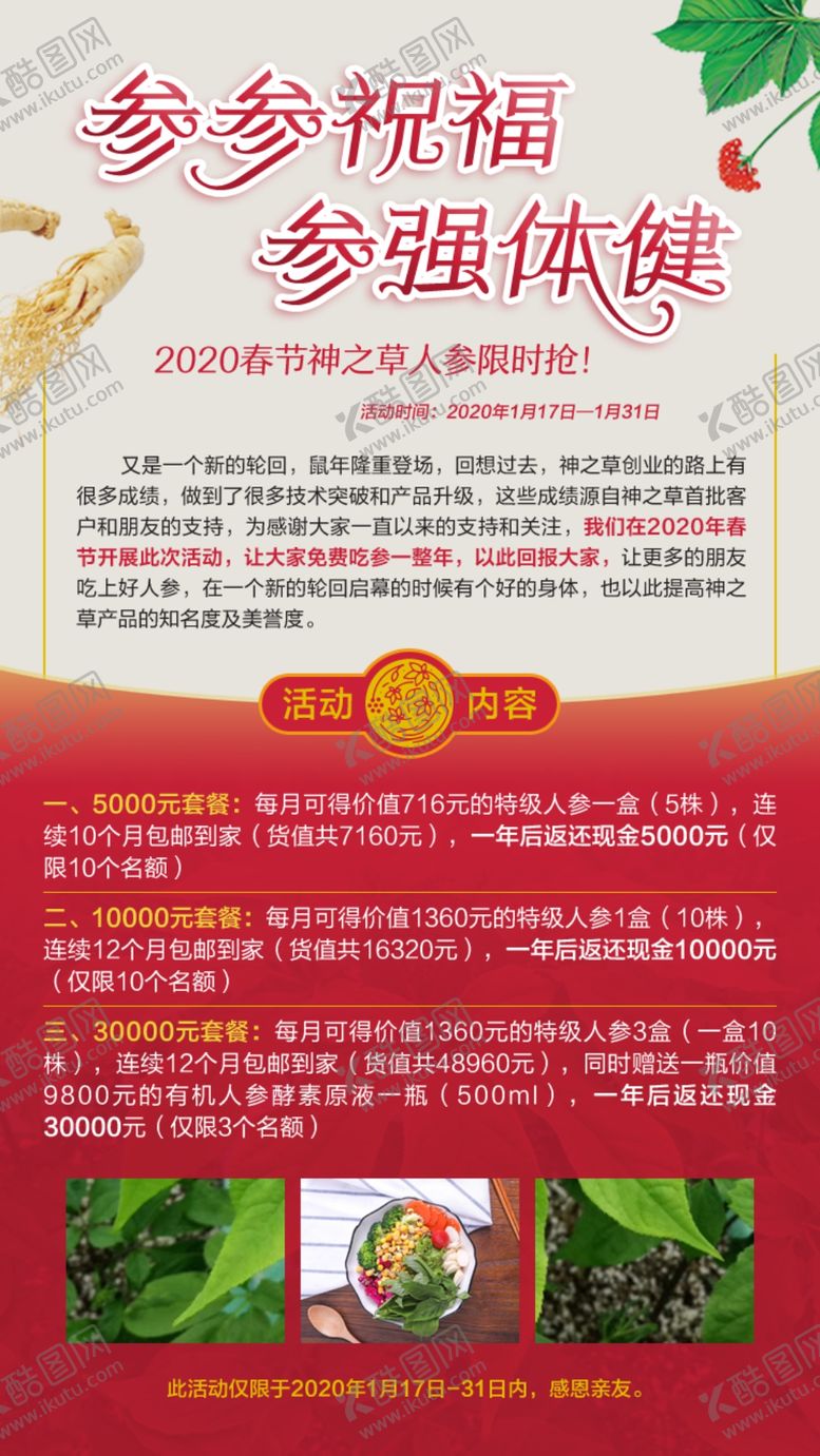 共享素材,尺寸大小是720*1280像素,人参海报是由平面广告设计师kar123上传,浏览本次作品的您可能还对海报,人参,健康,单页,鲜人参,,平面广告,,平面广告感兴趣。