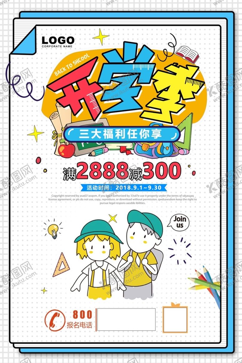 共享素材,尺寸大小是3500*5300像素,开学海报 是由平面广告设计师zy3201869上传,浏览本次作品的您可能还对开学海报,开学季海报,开学季促销,开学背景,开学活动,开学图片,开学促销,学生开学,开学季宣传,开学彩页,开学吊旗,开学易拉宝,开学展架,开学设计,开学促销海报,开学广告,开学素材,开学模版,文具开学促销,开学季海报图,淘宝开学促销,网店开学促销,平面广告,,平面广告感兴趣。