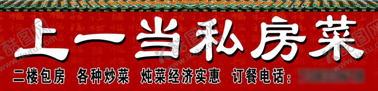 共享素材,尺寸大小是12205*2953像素,私房菜 门头是由平面广告设计师yuanzhiwu1上传,浏览本次作品的您可能还对门头,牌匾,喷绘,喷绘布,私房菜,菜馆,饭店,,平面广告,,平面广告感兴趣。