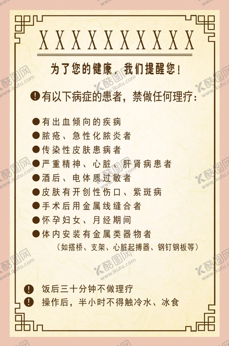 酷图网为你提供精美好看的素材模板下载,本次免抠元素作品主题是理疗禁忌,素材ID编号是05182709211058511395,格式是PSD,建议使用打开编辑,或是"通过网上查询一下对应格式的打开软件";该理疗禁忌素材大小是48.15 MB,素材主要颜色以白色为主,素材分享方式属于