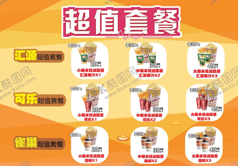 共享素材,尺寸大小是5906*4134像素,超值套餐是由平面广告设计师hzxy05jsjb上传,浏览本次作品的您可能还对套餐,可乐,薯条,爆米花,影院套餐,,平面广告,,平面广告感兴趣。