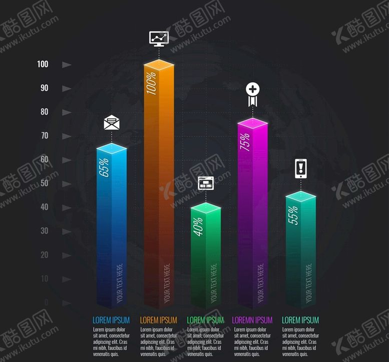 酷图网为你提供精美好看的素材模板下载,本次平面广告作品主题是七彩条信息图表,素材ID编号是10313110240021388880,格式是AI,建议使用打开编辑,或是"通过网上查询一下对应格式的打开软件";该七彩条信息图表素材大小是675.92 KB,素材主要颜色以黑色为主,素材分享方式属于