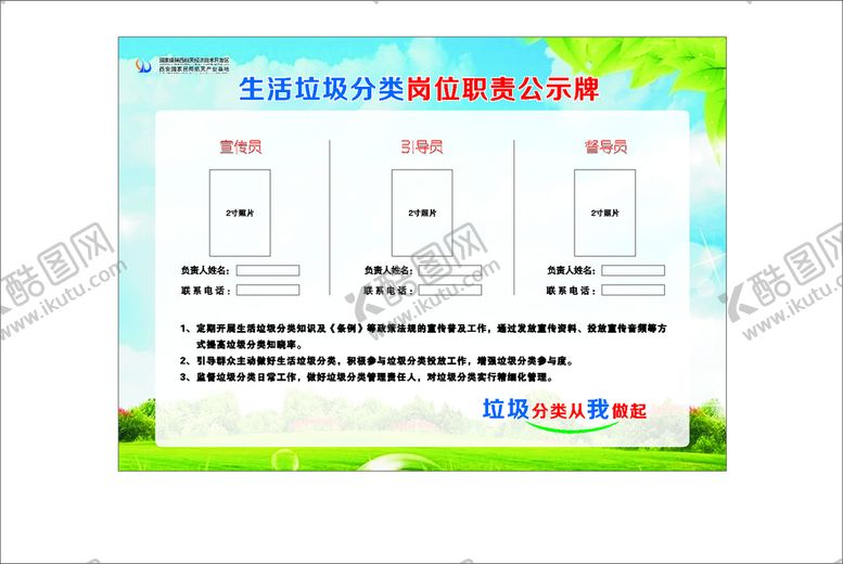 像素,生活垃圾分类岗位职责公示牌是由平面广告设计师luyong1111上传,浏览本次作品的您可能还对生活垃圾,垃圾分类,岗位职责,公示牌,西安垃圾分类,平面广告,,平面广告感兴趣。