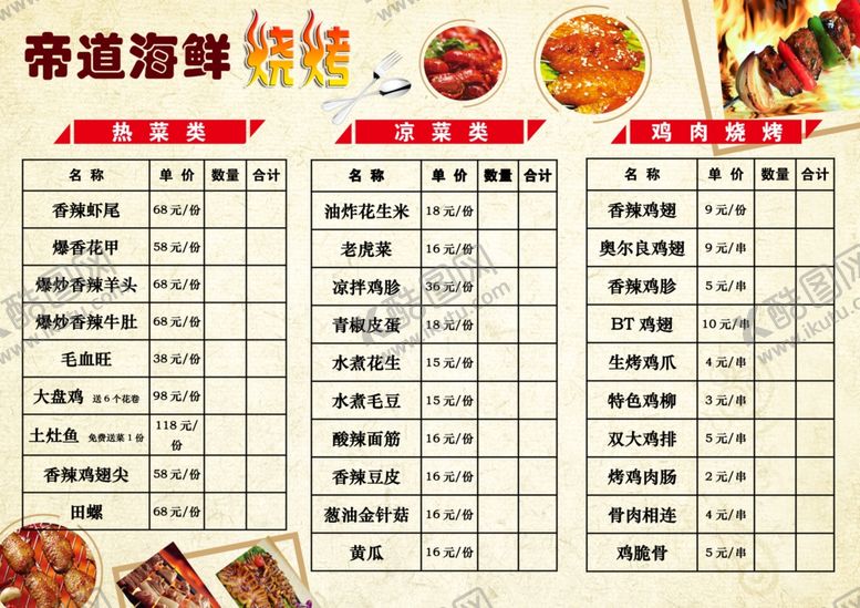共享素材,尺寸大小是3508*2480像素,菜单是由平面广告设计师youare2b2上传,浏览本次作品的您可能还对菜单,烧烤,海鲜菜单,海鲜,烧烤菜单,平面广告,,平面广告感兴趣。