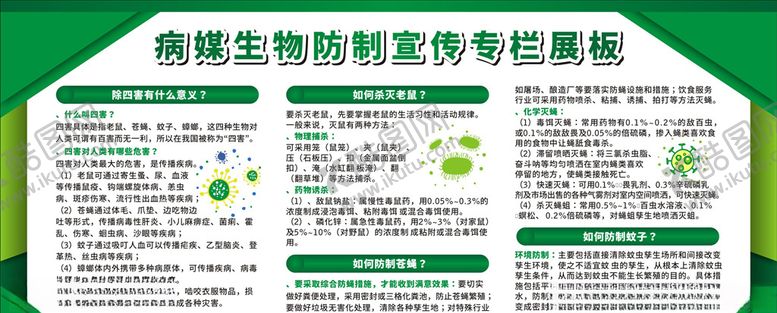 酷图网为你提供精美好看的素材模板下载,本次平面广告作品主题是病媒生物防治,素材ID编号是14064304180907287669,格式是CDR,建议使用打开编辑,或是"通过网上查询一下对应格式的打开软件";该病媒生物防治素材大小是134.15 KB,素材主要颜色以白色为主,素材分享方式属于