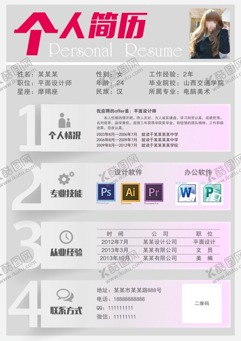 共享素材,尺寸大小是2480*3508像素,简历是由平面广告设计师ciweiqiu上传,浏览本次作品的您可能还对平面个人简历,设计个人简历,平面设计行业,简历,个性个人简历,创意个人简历,简历素材,简历背景,白色个人简历,简洁个人简历,个性简历,创意简历,毕业简历,精美简历,大学生简历,简历设计,个人简历模板,个人简历表格,个人简历范文,个人简历设计,求职简历,时尚简历,简洁简历,简历模板,个人简历,平面广告,,平面广告感兴趣。