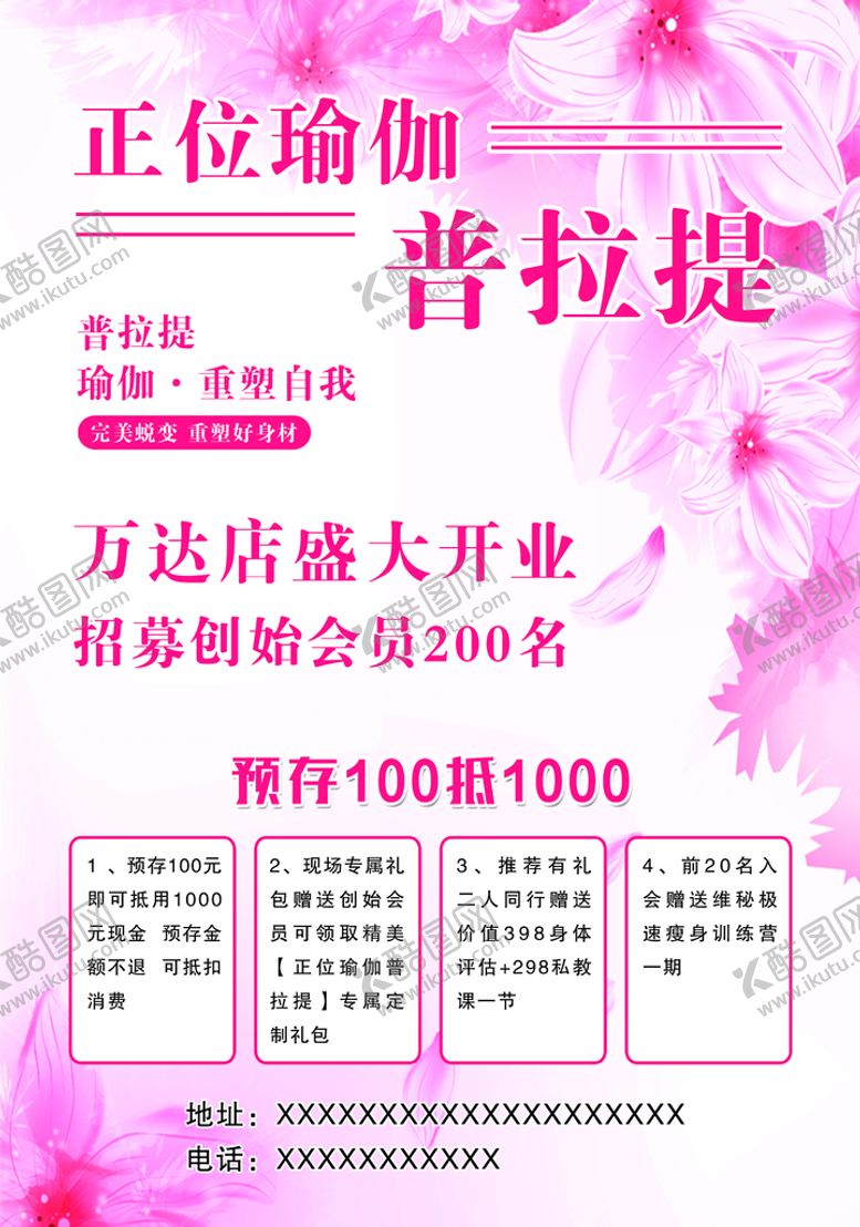 共享素材,尺寸大小是1665*2374像素,普拉提传单是由平面广告设计师tangzai521上传,浏览本次作品的您可能还对粉色,分层,传单,普拉提,PS,瑜伽,平面广告,,平面广告感兴趣。