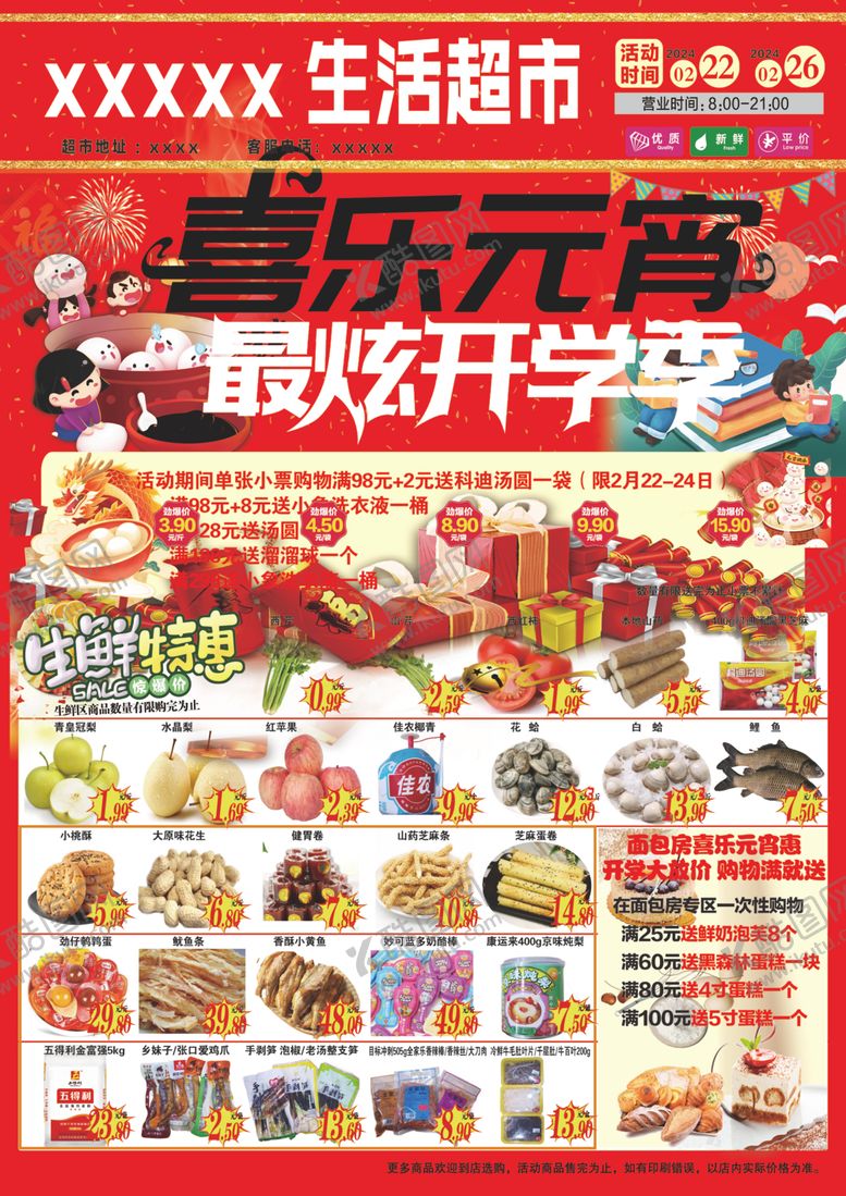 原创共享素材,尺寸大小是3508*4961像素,元宵开学季是由平面广告设计师linuxlovermm5上传,浏览本次作品的您可能还对元宵节,龙年,元宵,开学季,开学促销,超市DM,超市海报,超市宣传,活动海报,促销,元宵节海报,平面广告,,平面广告感兴趣。