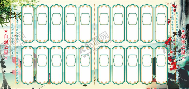 像素,表率之星自强之星是由平面广告设计师wankunbaobao上传,浏览本次作品的您可能还对表率之星,自强之星,学生风采,水墨背景,清爽背景,绿色背景,竹,竹叶,梅花,花,花儿,花朵,边框,古典边框,板报边框,校园板报,校园展板,学校板报,学校展板,平面广告,,平面广告感兴趣。