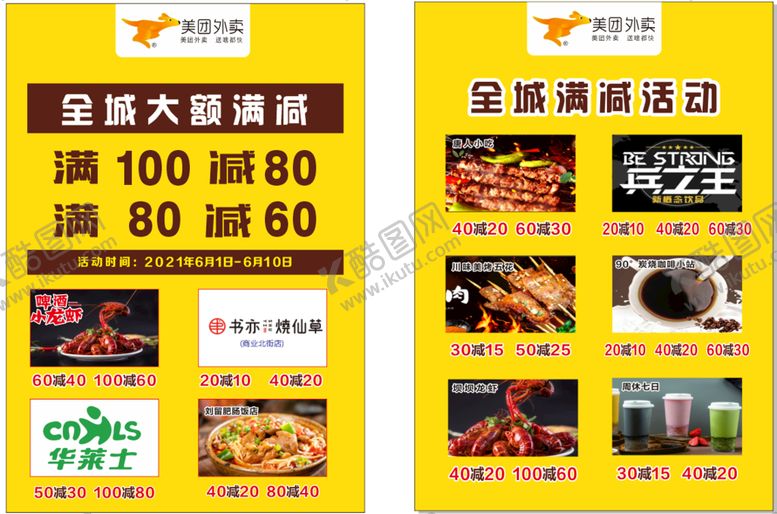 酷图网为你提供精美好看的素材模板下载,本次平面广告作品主题是美团外卖满减活动,素材ID编号是16951710170048515559,格式是CDR,建议使用打开编辑,或是"通过网上查询一下对应格式的打开软件";该美团外卖满减活动素材大小是21.18 MB,素材主要颜色以黄色为主,素材分享方式属于