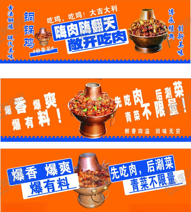 酷图网为你提供精美好看的素材模板下载,本次平面广告作品主题是铜锅鸡火锅鸡,素材ID编号是17197702270330047013,格式是CDR,建议使用打开编辑,或是"通过网上查询一下对应格式的打开软件";该铜锅鸡火锅鸡素材大小是14.15 MB,素材主要颜色以橙色为主,素材分享方式属于