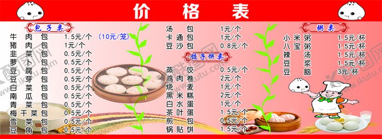 像素,早餐店价格表是由平面广告设计师cdy516上传,浏览本次作品的您可能还对包子店价格表,早餐店价格表,早餐店KT板,早餐店写真,包子,厨师矢量人物,包子矢量图,豆浆,树藤,五谷杂粮,边框,,平面广告,,平面广告感兴趣。