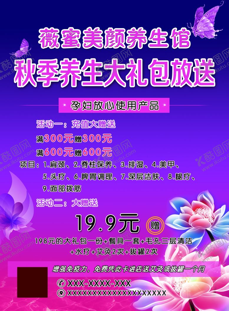 酷图网为你提供精美好看的素材模板下载,本次平面广告作品主题是养生馆单页,素材ID编号是17560103140316428459,格式是PSD,建议使用打开编辑,或是"通过网上查询一下对应格式的打开软件";该养生馆单页素材大小是90.42 MB,素材主要颜色以紫色为主,素材分享方式属于