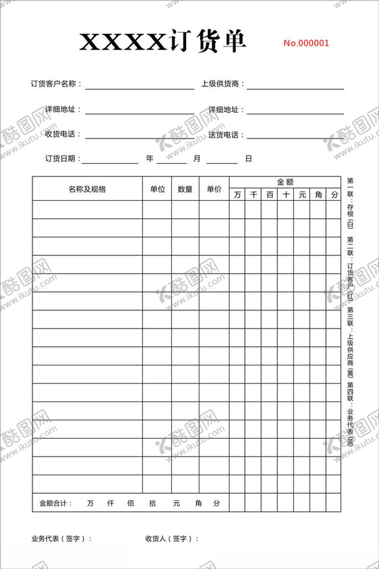 酷图网为你提供精美好看的素材模板下载,本次平面广告作品主题是订货单,素材ID编号是18490902050353403701,格式是CDR,建议使用打开编辑,或是"通过网上查询一下对应格式的打开软件";该订货单素材大小是1.73 MB,素材主要颜色以白色为主,素材分享方式属于