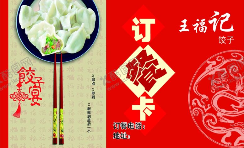 共享素材,尺寸大小是1087*661像素,订餐卡是由平面广告设计师enlic上传,浏览本次作品的您可能还对饺子,外卖,订餐,餐饮,古风,快餐,美食,平面广告,,平面广告感兴趣。