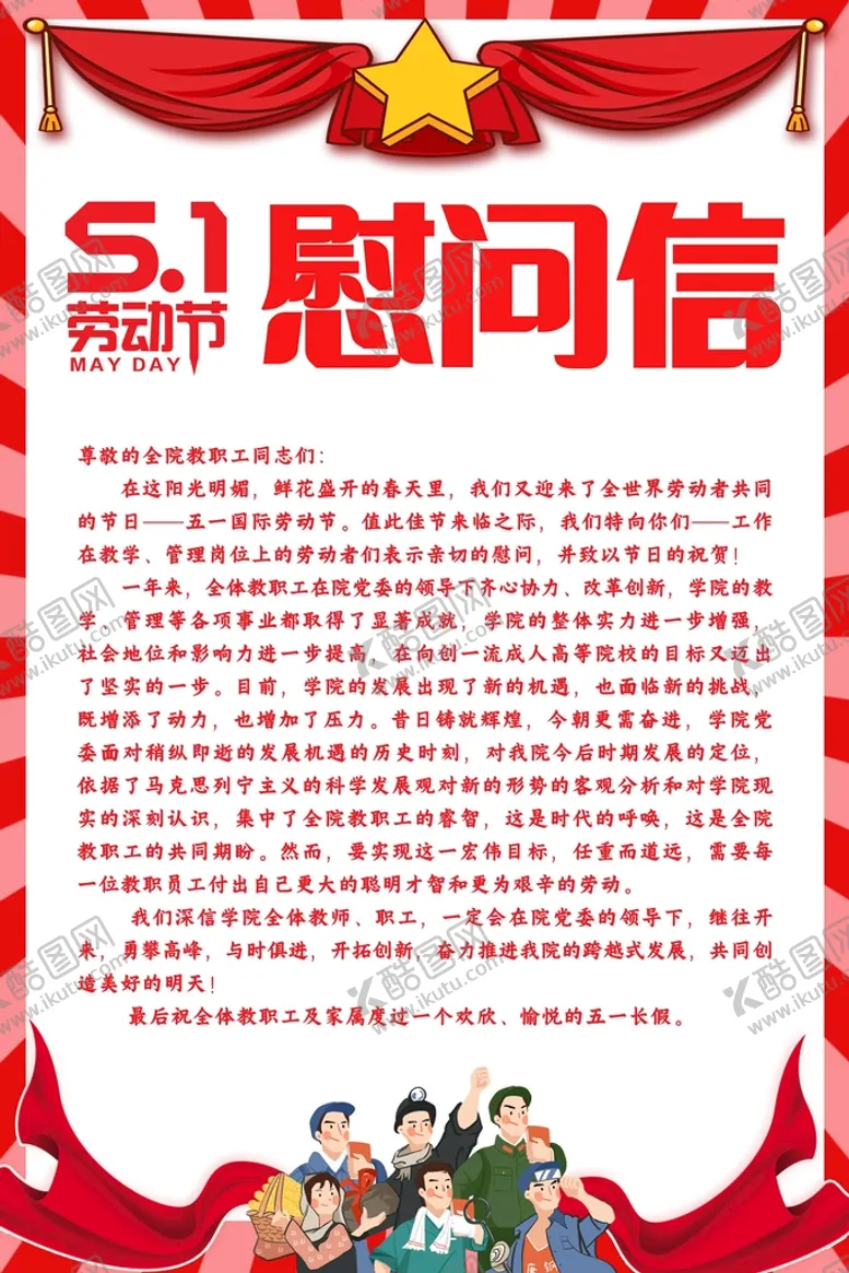 原创共享素材,尺寸大小是3543*5315像素,五一慰问信是由平面广告设计师holy1987上传,浏览本次作品的您可能还对五一,劳动节,慰问信,公司,劳动,庆典,海报,清单,慰问,,平面广告,,平面广告感兴趣。