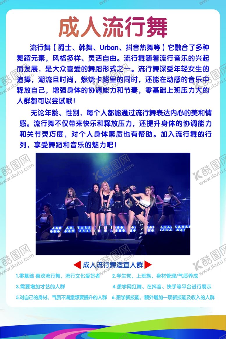 共享素材,尺寸大小是1134*1700像素,成人流行舞是由平面广告设计师hunanlyq上传,浏览本次作品的您可能还对成人流行舞,舞蹈,psd,成人,相纸,平面广告,,平面广告感兴趣。