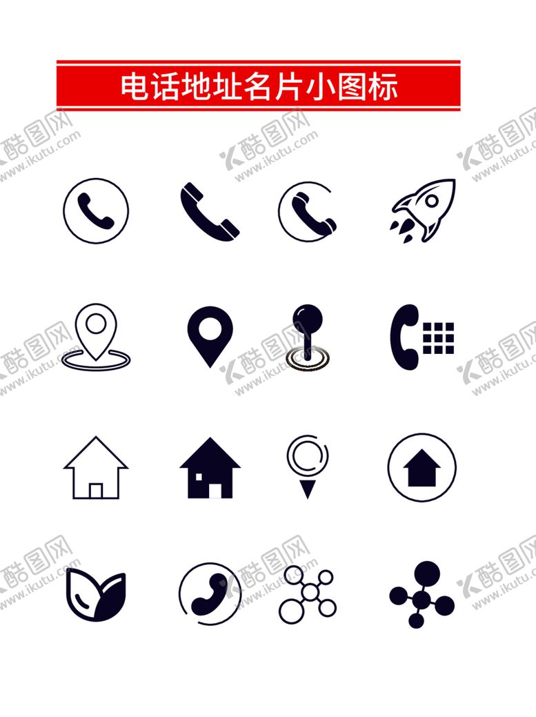 酷图网为你提供精美好看的素材模板下载,本次免抠元素作品主题是电话地址小图标,素材ID编号是19296012102354509091,格式是AI,建议使用打开编辑,或是"通过网上查询一下对应格式的打开软件";该电话地址小图标素材大小是368 KB,素材主要颜色以白色为主,素材分享方式属于