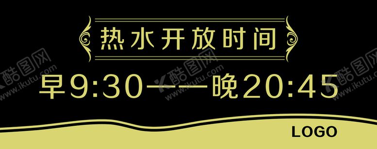 共享素材,尺寸大小是3425*1358像素,热水开放 是由平面广告设计师fgfg56上传,浏览本次作品的您可能还对黑色,金色,标牌,时间,黄色,温馨提示,健身房,浴室,,平面广告,,平面广告感兴趣。