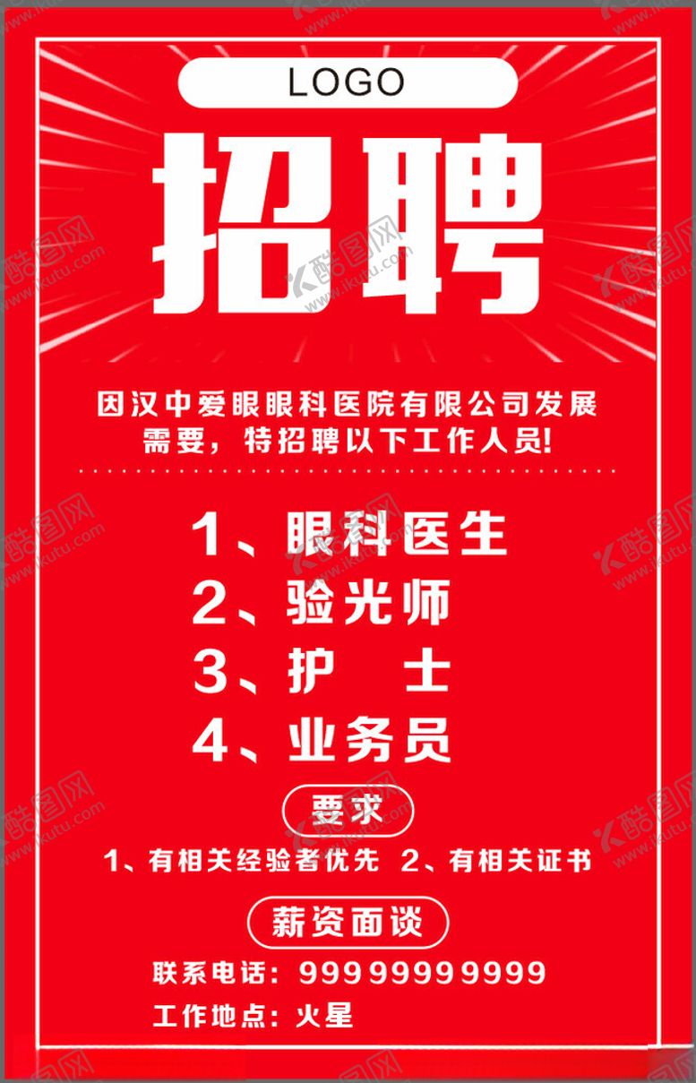 酷图网为你提供精美好看的素材模板下载,本次平面广告作品主题是招聘海报,素材ID编号是21559502161923468266,格式是CDR,建议使用打开编辑,或是"通过网上查询一下对应格式的打开软件";该招聘海报素材大小是881.07 KB,素材主要颜色以红色为主,素材分享方式属于