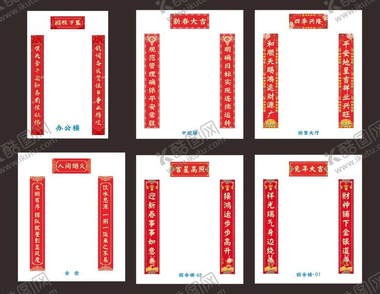 酷图网为你提供精美好看的素材模板下载,本次平面广告作品主题是新年对联,素材ID编号是22268411120649288901,格式是CDR,建议使用打开编辑,或是"通过网上查询一下对应格式的打开软件";该新年对联素材大小是61.91 MB,素材主要颜色以白色为主,素材分享方式属于
