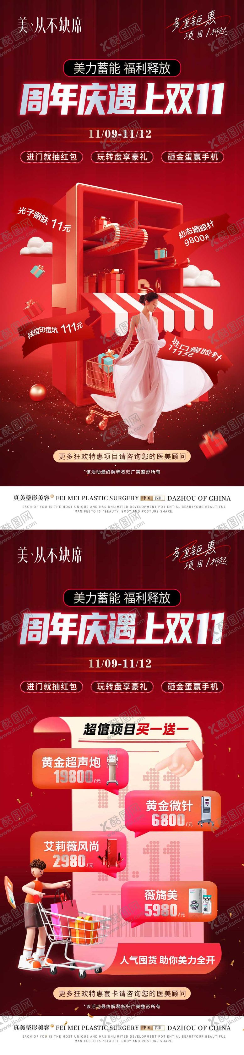 酷图网为你提供精美好看的素材模板下载,本次平面广告作品主题是医美周年庆双11活动创意,素材ID编号是22736612040633224784,格式是PSD,建议使用打开编辑,或是"通过网上查询一下对应格式的打开软件";该医美周年庆双11活动创意素材大小是178.05 MB,素材主要颜色以棕色为主,素材分享方式属于
