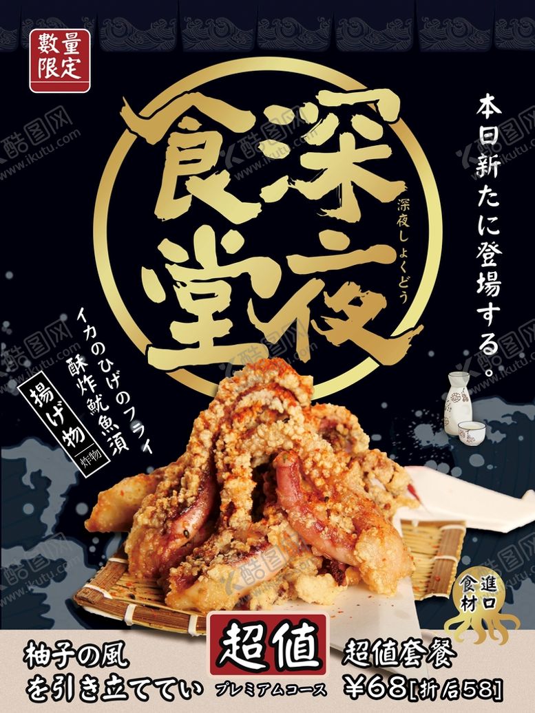 共享素材,尺寸大小是7087*9449像素,酥炸鱿鱼须是由平面广告设计师qq12441483上传,浏览本次作品的您可能还对炸鱿鱼须,鱿鱼须,深夜堂夜,酥炸鱿鱼须,炸鱿鱼,平面广告,,平面广告感兴趣。