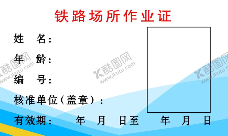 酷图网为你提供精美好看的素材模板下载,本次平面广告作品主题是铁路场所作业证 工作证,素材ID编号是23940809131216068362,格式是PSD,建议使用打开编辑,或是"通过网上查询一下对应格式的打开软件";该铁路场所作业证 工作证素材大小是3.94 MB,素材主要颜色以白色为主,素材分享方式属于