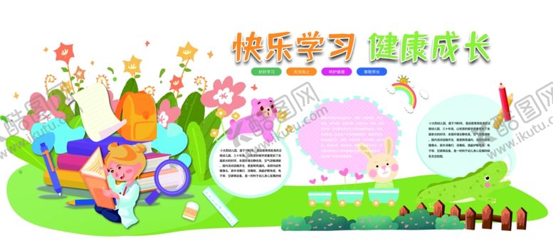 酷图网为你提供精美好看的素材模板下载,本次平面广告作品主题是幼儿园文化墙,素材ID编号是26356301151512545478,格式是PSD,建议使用打开编辑,或是"通过网上查询一下对应格式的打开软件";该幼儿园文化墙素材大小是21.3 MB,素材主要颜色以白色为主,素材分享方式属于