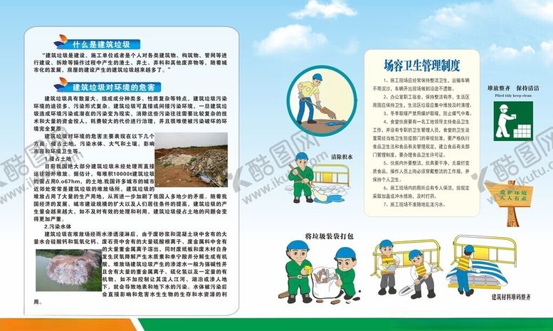 酷图网为你提供精美好看的素材模板下载,本次平面广告作品主题是建筑垃圾展版宣传,素材ID编号是28447801261905095974,格式是CDR,建议使用打开编辑,或是"通过网上查询一下对应格式的打开软件";该建筑垃圾展版宣传素材大小是5.97 MB,素材主要颜色以白色为主,素材分享方式属于