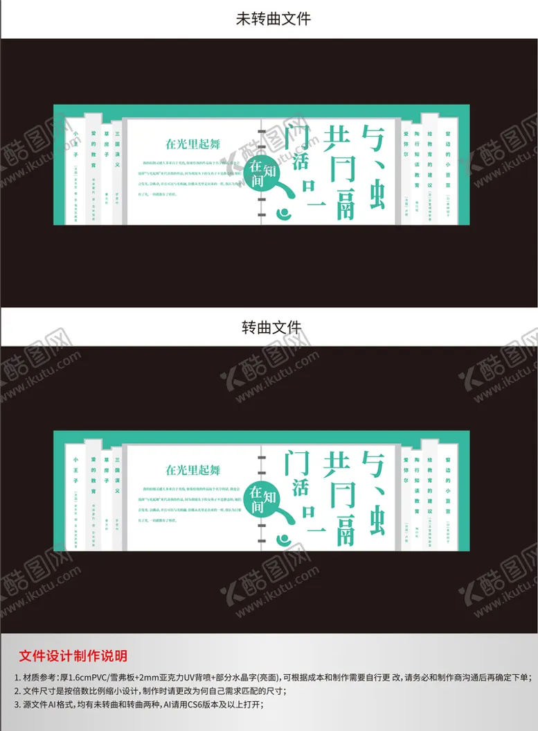 酷图网为你提供精美好看的素材模板下载,本次平面广告作品主题是学校文化墙图片,素材ID编号是28700510200927377049,格式是AI,建议使用打开编辑,或是"通过网上查询一下对应格式的打开软件";该学校文化墙图片素材大小是2.38 MB,素材主要颜色以黑色为主,素材分享方式属于