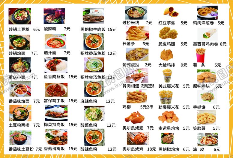 酷图网为你提供精美好看的素材模板下载,本次平面广告作品主题是汉堡鱼粉酸辣粉鱼香肉丝饭,素材ID编号是29465709260022426071,格式是PSD,建议使用打开编辑,或是"通过网上查询一下对应格式的打开软件";该汉堡鱼粉酸辣粉鱼香肉丝饭素材大小是63.83 MB,素材主要颜色以白色为主,素材分享方式属于