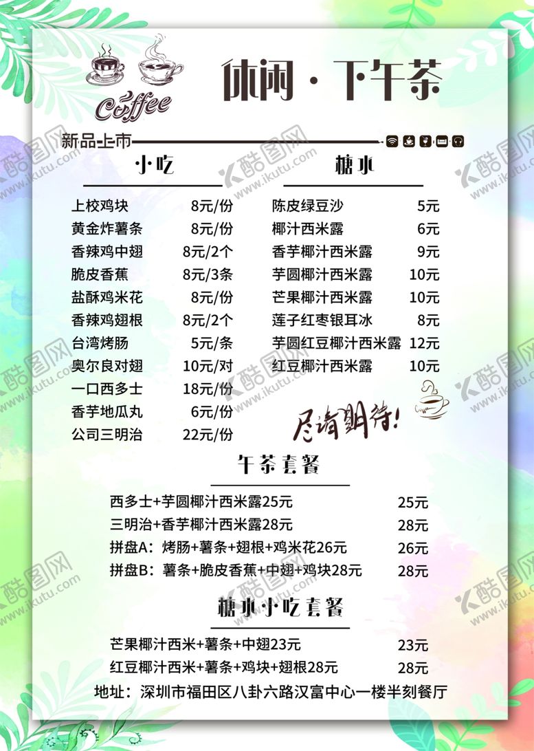 原创共享素材,尺寸大小是2150*3024像素,休闲下午茶是由平面广告设计师chjj1988mm上传,浏览本次作品的您可能还对休闲,下午茶,DM,奶茶,炸鸡,,平面广告,,平面广告感兴趣。