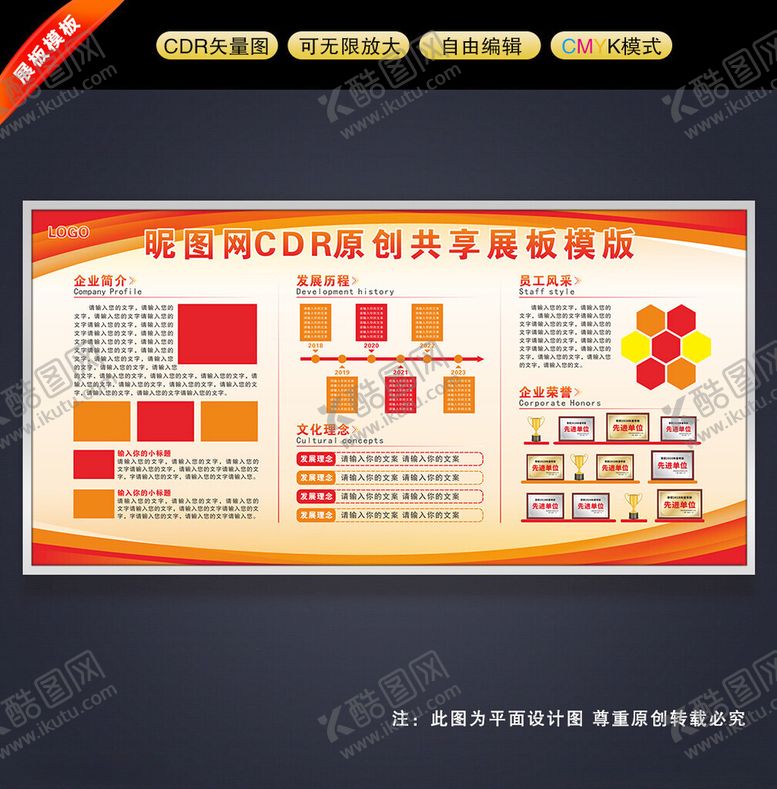 酷图网为你提供精美好看的素材模板下载,本次平面广告作品主题是企业展板,素材ID编号是30038002201331081582,格式是CDR,建议使用打开编辑,或是"通过网上查询一下对应格式的打开软件";该企业展板素材大小是484.07 KB,素材主要颜色以棕色为主,素材分享方式属于