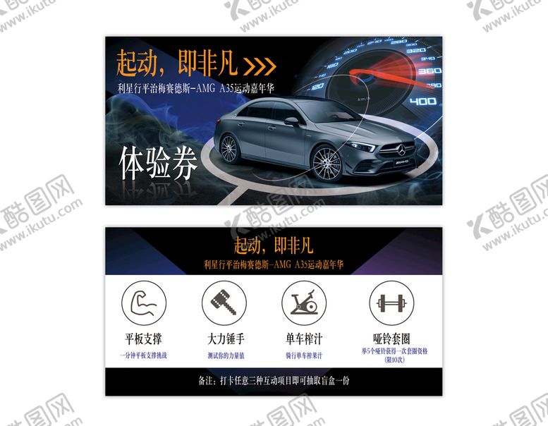 原创共享素材,尺寸大小是1181*591像素,打卡体验券是由平面广告设计师galahad55上传,浏览本次作品的您可能还对打卡券,打卡,奖券,汽车,体验券,平面广告,,平面广告感兴趣。