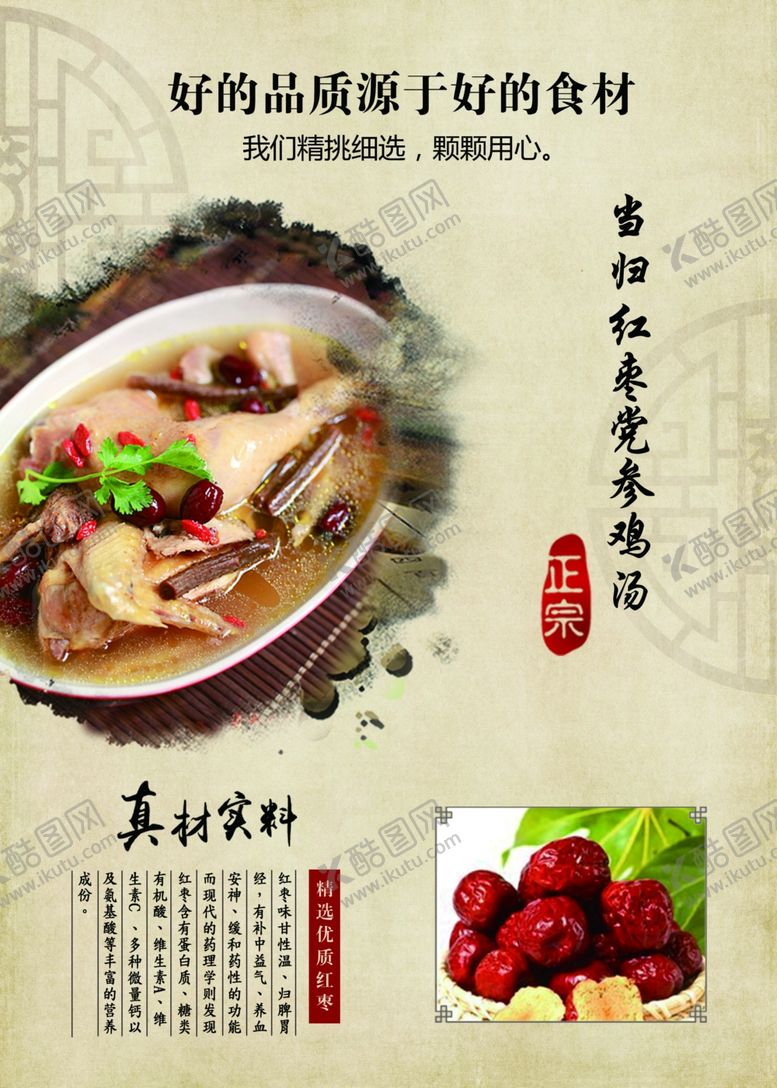 原创共享素材,尺寸大小是2362*3307像素,当归红枣党参鸡汤是由平面广告设计师originalwinter上传,浏览本次作品的您可能还对红枣功效,鸡汤,药膳鸡汤,当归,滋补,小罐汤,平面广告,,平面广告感兴趣。