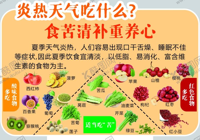 原创共享素材,尺寸大小是1417*992像素,炎热天气吃什么是由免抠元素设计师yong5665上传,浏览本次作品的您可能还对炎热天气,吃什么,食苦,清补,重养心,酸味食物,苦味食物,红色食物,西红柿,菠萝,葡萄,苦瓜,山楂,免抠元素,,免抠元素感兴趣。