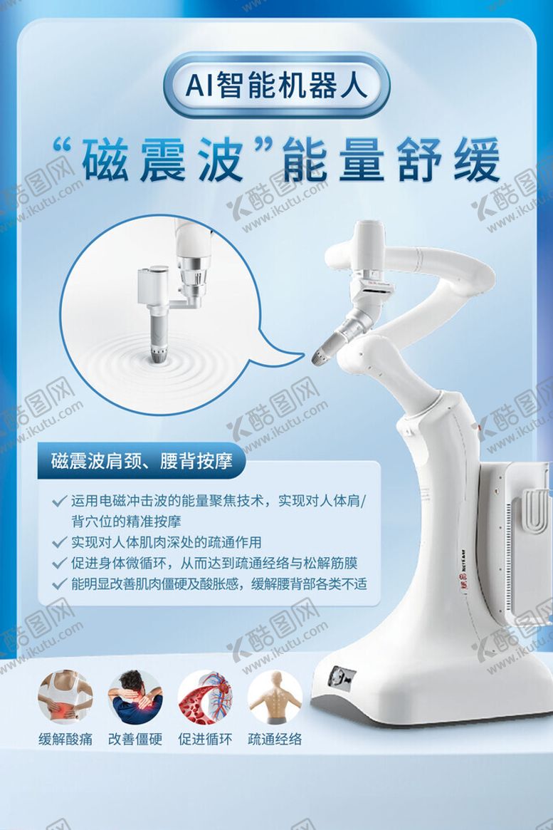 原创共享素材,尺寸大小是4724*7087像素,AI智能机器人磁震波能量舒缓是由平面广告设计师jeff0482003上传,浏览本次作品的您可能还对初存健康,会员招募,悦心家族,健康,AI智能,机器人磁震波,能量舒缓,平面广告,,平面广告感兴趣。