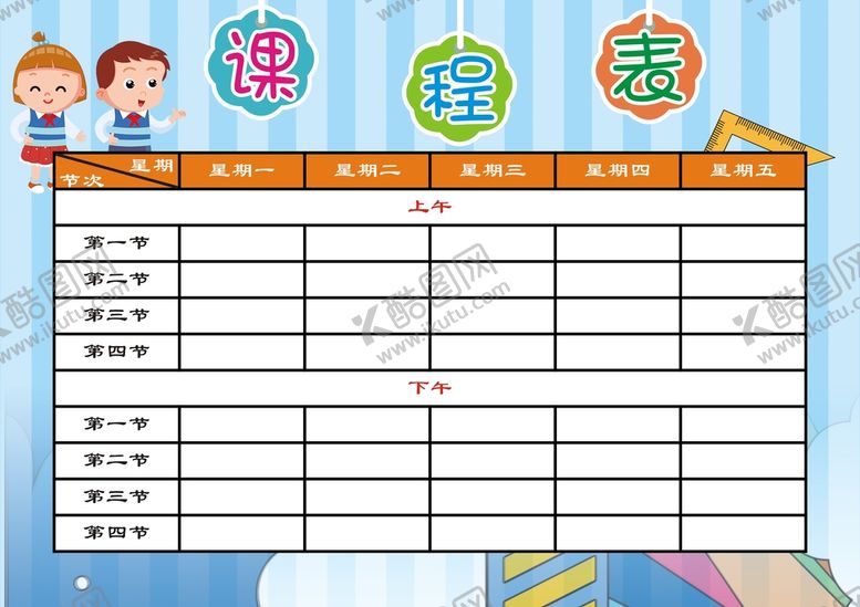 酷图网为你提供精美好看的素材模板下载,本次平面广告作品主题是课程表,素材ID编号是32227610201603346220,格式是CDR,建议使用打开编辑,或是"通过网上查询一下对应格式的打开软件";该课程表素材大小是7.65 MB,素材主要颜色以白色为主,素材分享方式属于