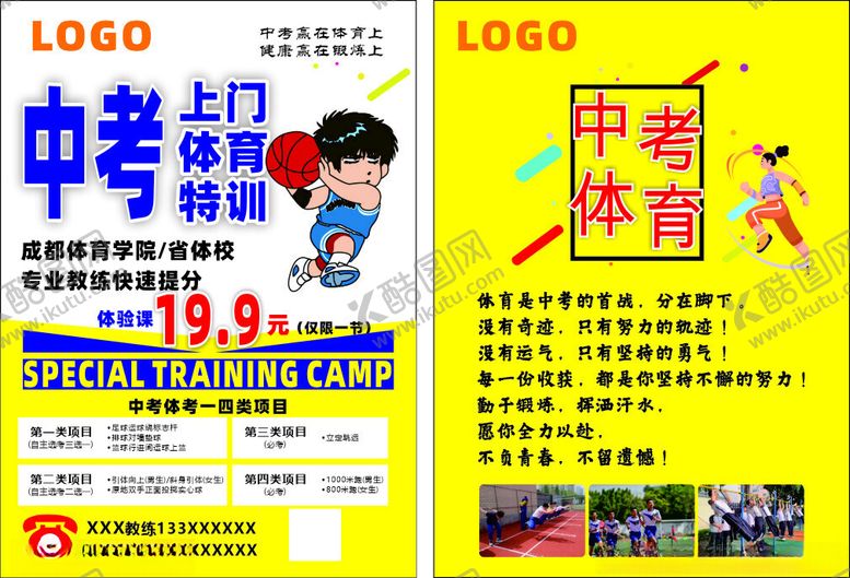 酷图网为你提供精美好看的素材模板下载,本次平面广告作品主题是中考体育宣传单,素材ID编号是32679402222004042195,格式是CDR,建议使用打开编辑,或是"通过网上查询一下对应格式的打开软件";该中考体育宣传单素材大小是3.74 MB,素材主要颜色以黄色为主,素材分享方式属于