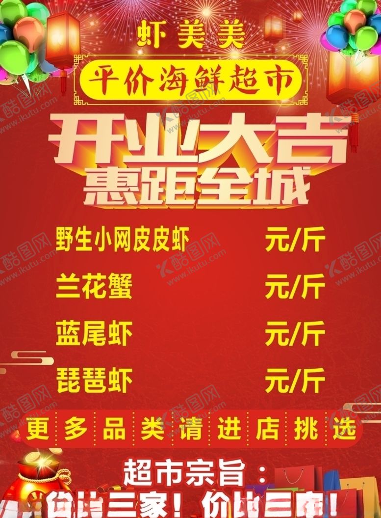 像素,开业大吉是由平面广告设计师mikelee上传,浏览本次作品的您可能还对开业大吉,开业,大吉,海鲜,平价海鲜,平价海鲜超市,超市,海鲜超市,全城,惠距全城,宗旨,超市宗旨,货比三家,价比三家,皮皮虾,兰花蟹,蓝尾虾,琵琶虾,平面广告,,平面广告感兴趣。