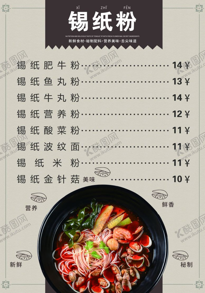 共享素材,尺寸大小是2067*2953像素,一席花甲是由免抠元素设计师qiujunzhang上传,浏览本次作品的您可能还对锡纸粉,花甲粉,菜单,锡纸粉丝,粉丝,免抠元素,,免抠元素感兴趣。