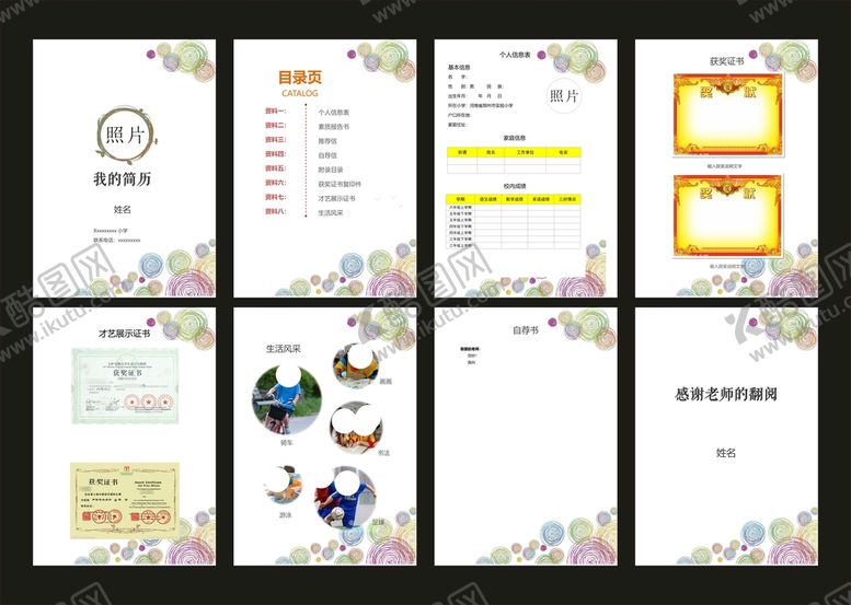酷图网为你提供精美好看的素材模板下载,本次平面广告作品主题是小学升学简历模板,素材ID编号是34207401281715006063,格式是CDR,建议使用打开编辑,或是"通过网上查询一下对应格式的打开软件";该小学升学简历模板素材大小是22.3 MB,素材主要颜色以白色为主,素材分享方式属于