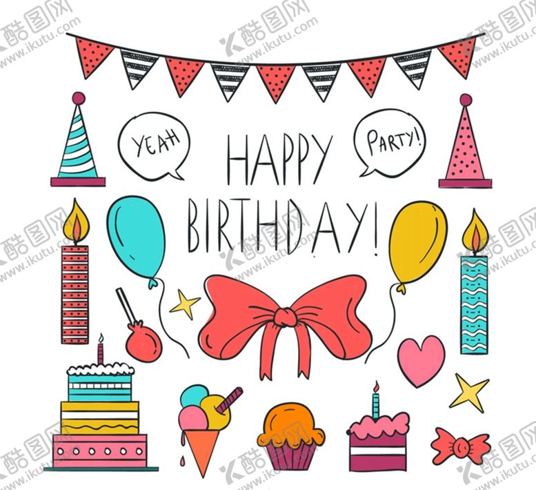 原创共享素材,尺寸大小是0*0像素,彩绘生日装饰物是由平面广告设计师jiaoaodenvwang上传,浏览本次作品的您可能还对三角拉旗,生日礼帽,对话框,气球,蝴蝶结,eps,ai,矢量,高清图片,素材,,平面广告,,平面广告感兴趣。