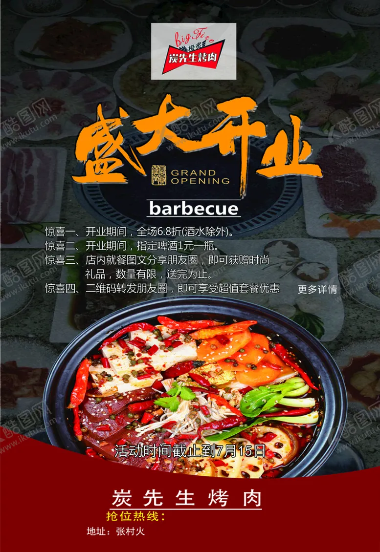 共享素材,尺寸大小是2079*3024像素,烤肉盛大开业是由平面广告设计师1liuxiewei2上传,浏览本次作品的您可能还对烧烤菜单,活动宣传单,烤肉菜单,餐饮宣传单,美食菜单,餐厅菜单,餐饮菜单,美食宣传单,烧烤宣传单,烤肉宣传单,烧烤素材,烧烤海报,,平面广告,,平面广告感兴趣。