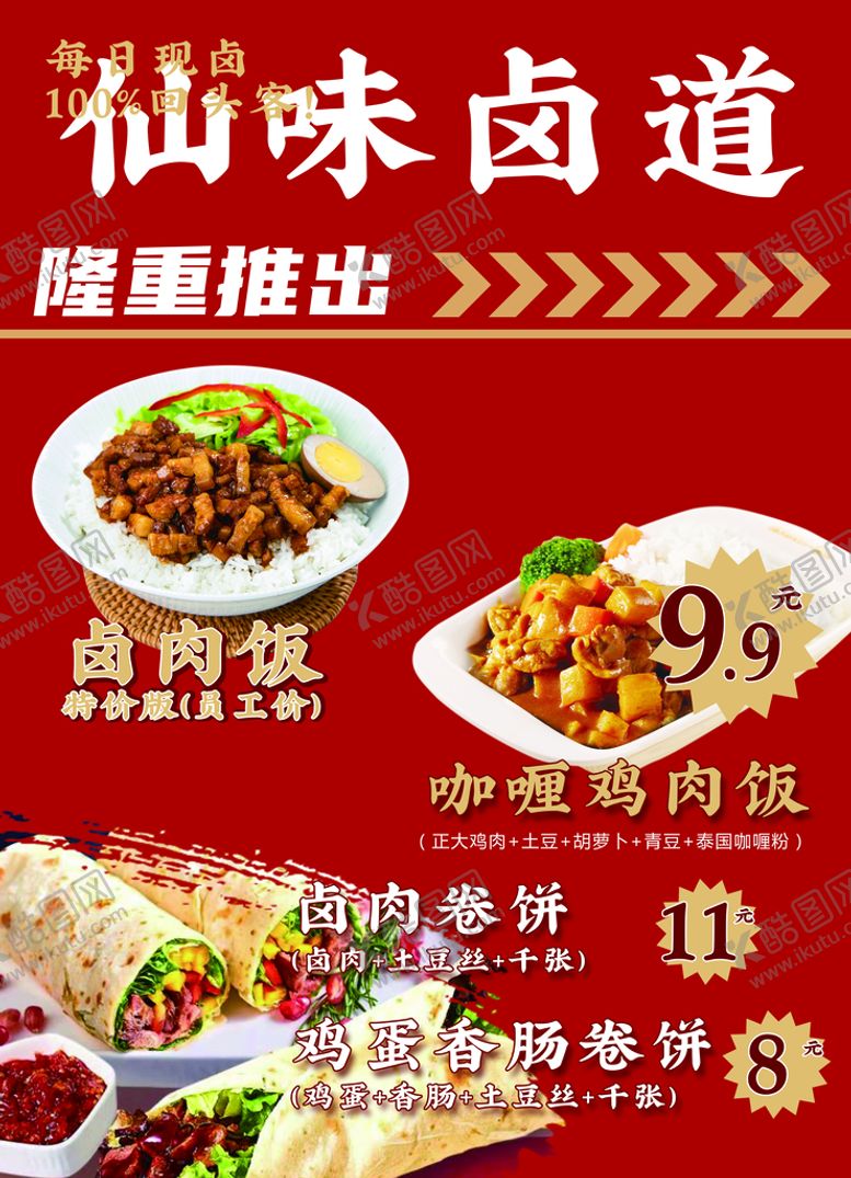 酷图网为你提供精美好看的素材模板下载,本次平面广告作品主题是卤味 卤肉饭 咖喱饭 海报 ,素材ID编号是36581709170111296938,格式是PSD,建议使用打开编辑,或是"通过网上查询一下对应格式的打开软件";该卤味 卤肉饭 咖喱饭 海报 素材大小是90.19 MB,素材主要颜色以红色为主,素材分享方式属于