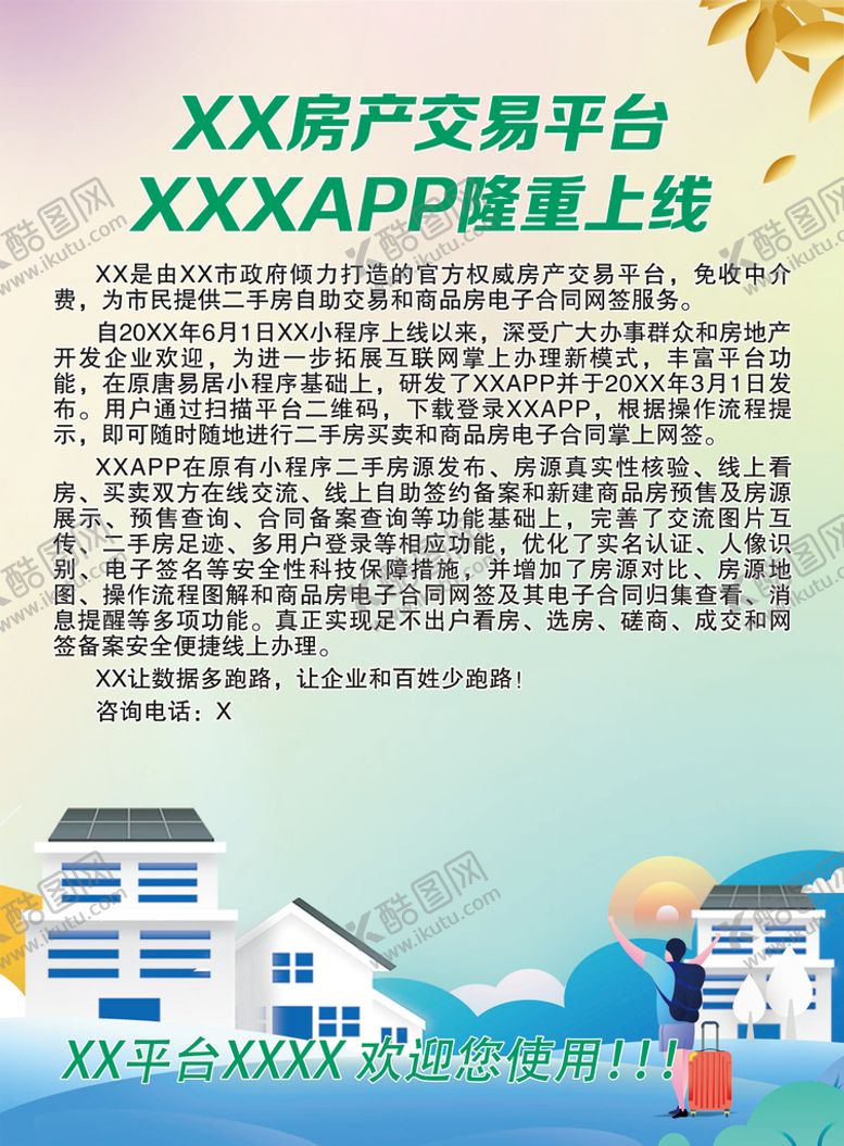 酷图网为你提供精美好看的素材模板下载,本次平面广告作品主题是房产交易平台,素材ID编号是38260909222143009872,格式是PSD,建议使用打开编辑,或是"通过网上查询一下对应格式的打开软件";该房产交易平台素材大小是50.16 MB,素材主要颜色以白色为主,素材分享方式属于