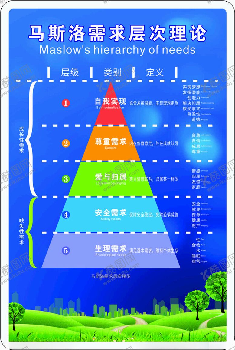 酷图网为你提供精美好看的素材模板下载,本次创意背景作品主题是马斯洛需求层次理论,素材ID编号是38525702240109001970,格式是CDR,建议使用打开编辑,或是"通过网上查询一下对应格式的打开软件";该马斯洛需求层次理论素材大小是9.41 MB,素材主要颜色以蓝色为主,素材分享方式属于