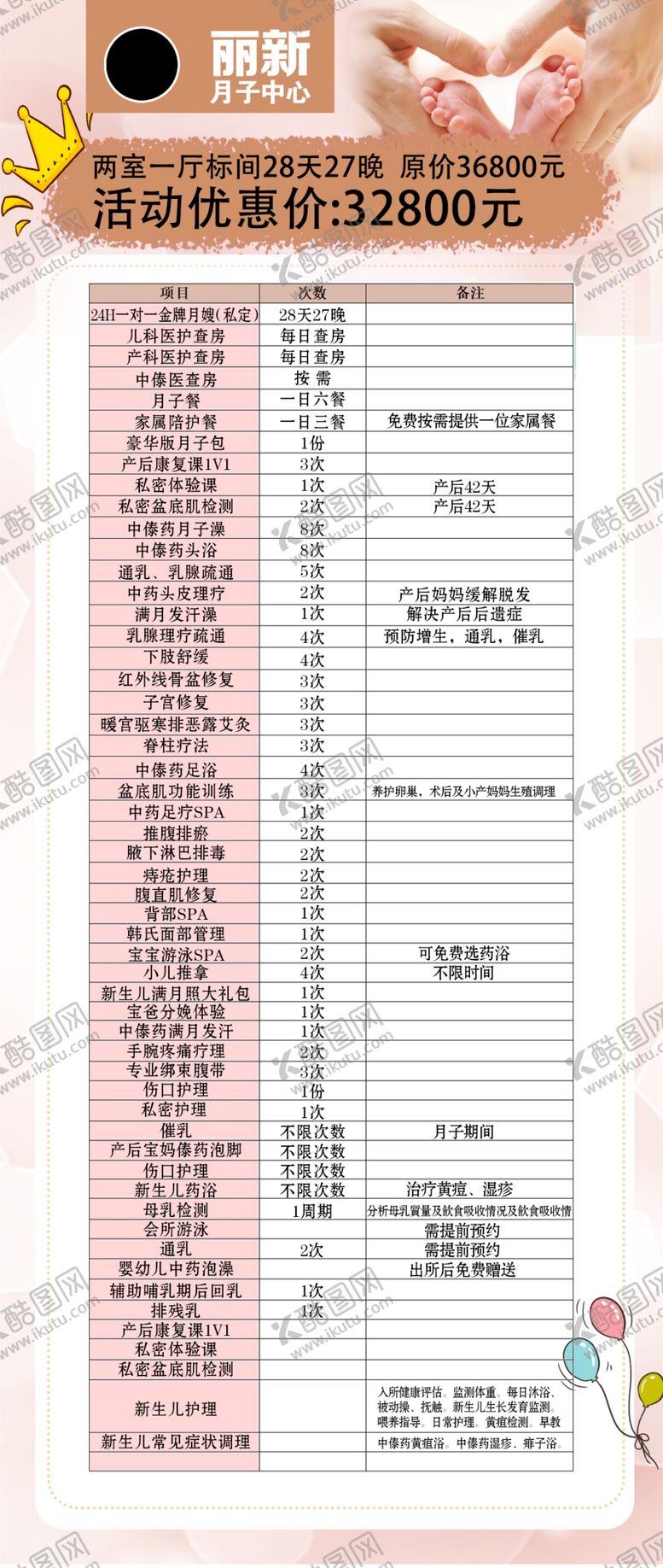 原创共享素材,尺寸大小是1134*2680像素,产后服务明细是由平面广告设计师jerryby001上传,浏览本次作品的您可能还对价格表,项目表,单页,易拉宝,服务明细清单,平面广告,,平面广告感兴趣。